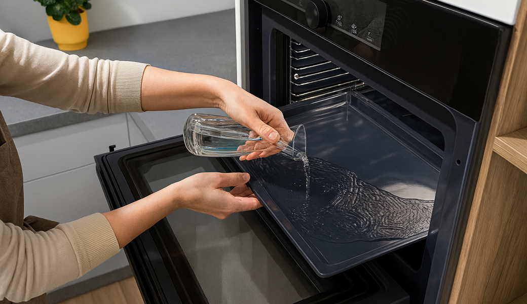 Процесс работает следующим образом: в специальное углубление на дне духовки или в противень наливают 400-500 мл воды, иногда с добавлением моющего средства. Духовка нагревается до температуры 90-100°C и поддерживает ее в течение 30-40 минут. Образующийся пар оседает на стенках и размягчает загрязнения.
