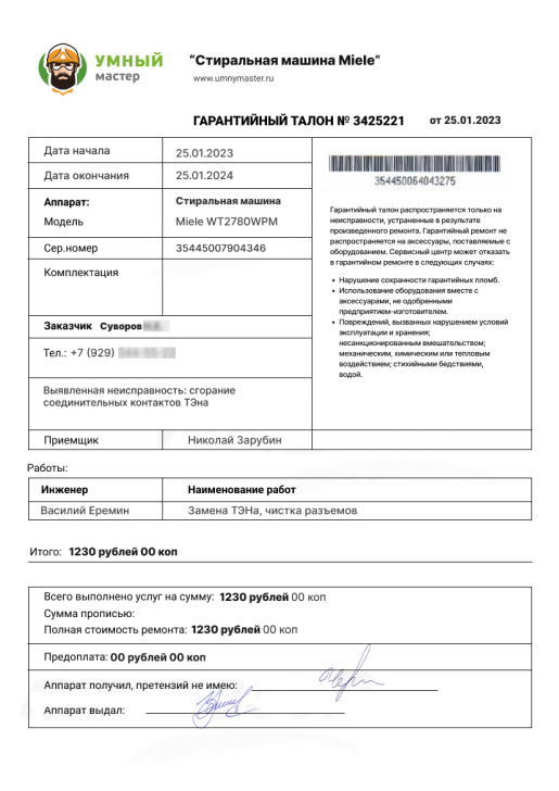 Мы предоставляем гарантию на 1 год, но с уверенностью можем сказать: "Лучшая гарантия - это та, которой не воспользовались". Что толку от бесплатного гарантийного ремонта, если ваша стиральная машинка будет раз за разом заливать ванную комнату (и быть может соседей) или холодильник портить недельный запас еды?