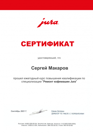 19 января 2025 года Сергей Макаров успешно завершил ежегодную аттестационную практику в нашем сервисном центре, тем самым подтвердил свою квалификацию.